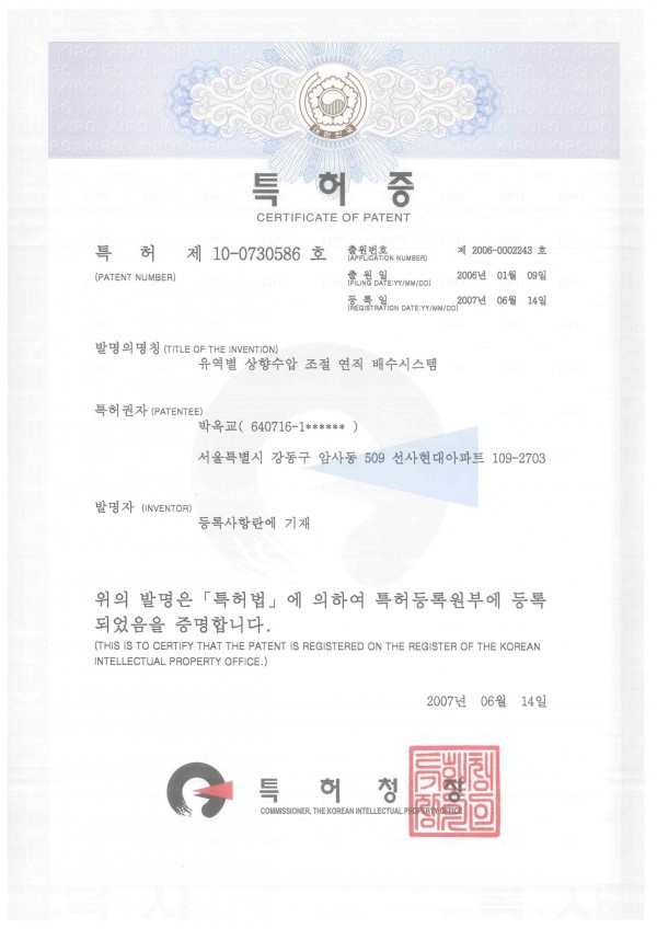 2.특허증(배수특허1)